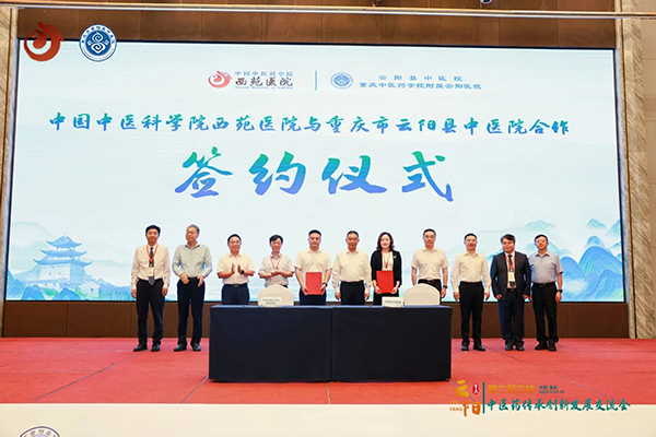 9月20日上午,中国中医科学院西苑医院与重庆市云阳县中医院战略合作签约仪式在云阳县举行。重庆中医药学院党委副书记潘传波主持开幕式。成都中医药大学原校长余曙光、重庆市卫生健康委员会二级巡视员胡彬及云阳县委县府相关领导出席仪式并致辞,共同见证这一推动区域中医药发展的重要时刻。西苑医院党委书记李秋艳与重庆市云阳县中医院党委书记刘超代表双方签署协议,标志着两家医院正式建立战略合作关系。