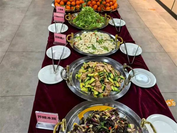 1.8米*0.6米的双层蛋糕,象征着迎来建院70年的喜悦,也代表着对甜蜜生活的祝福。同时,本次美食周共呈现了湖北、福建、广东、江浙等地的近50种地方美食,多种口味选择,传统与创新并存,为建院70周年增添了一份甜蜜!