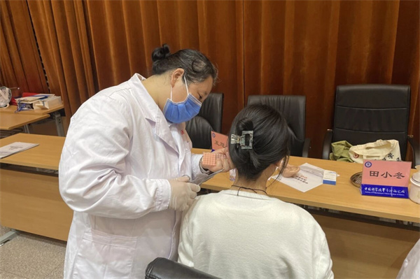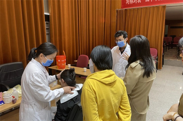 教师群体长期伏案备课、批改作业,加之久站授课、作息不规律,普遍存在颈椎腰椎劳损、亚健康状态等问题。医护人员通过“望闻问切”给就诊教师们提出科学合理的诊疗建议,同时为颈椎腰椎疼痛的教师现场开展针灸等中医特色治疗缓解疼痛。