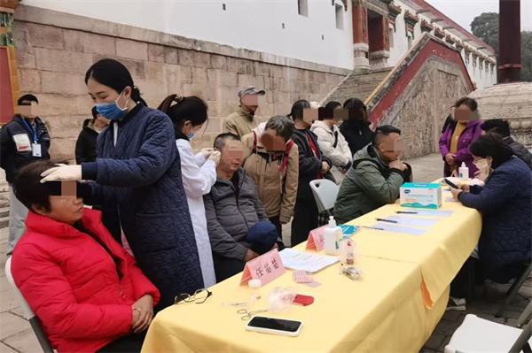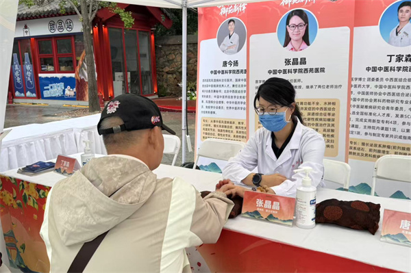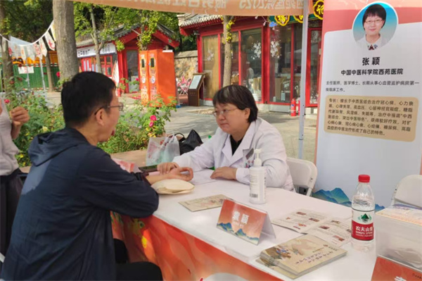 2025年10月国庆期间,西苑医院会同海淀文旅集团,在同庆街设立中医健康驿站,累计派出专家100余名,将义诊服务融入文旅场景。在同庆街的古道旁,义诊区成为景区一道独特的风景线,专家团队现场开展脉诊、耳穴压豆、养生茶饮体验等服务,络绎不绝的游客在观赏古街秋韵、购买文创产品之余,驻足体验中医特色疗法,让市民游客在欣赏美景的同时,享受到专业的中医药健康服务。