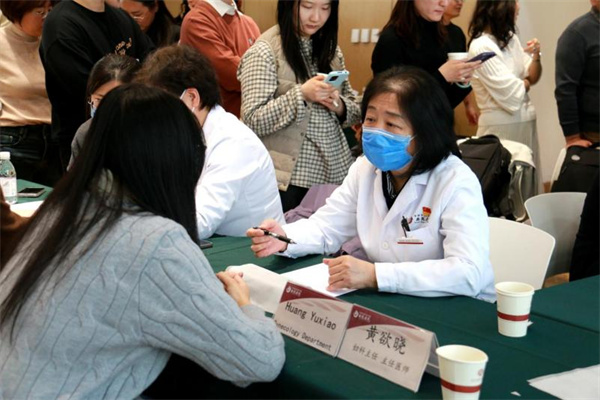 雷晓燕书记带领西苑医院团队参观了承泽园的校园环境和历史纪念建筑,详细介绍了国家发展研究院建院以来的发展历程与学术成就。李秋艳书记结合中医经典、哲学思想与现代健康养生理念作“从《黄帝内经》到生活养生 中医智慧的知与行”主题分享。气功推拿科谭天阳医师带领在场师生练习春季中医养生功法,体验中医运动养生。综合内科、妇科、耳鼻喉科、针灸科、气功推拿科及护理专业的多学科专家团队为北大师生提供健康咨询、中医技术体验及个性化养生建议。现场还展出了西苑医院系列文创产品,包括四气调神香囊、五禽戏冰箱贴、中药手串、养生茶点等蕴含中医药文化元素的特色产品。