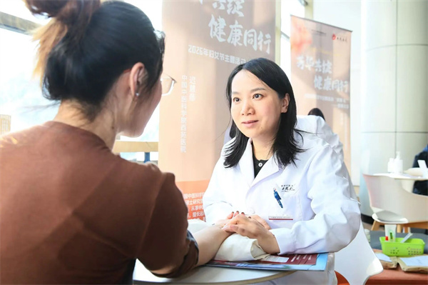 义诊环节,由皮肤科、内分泌科、康复医学科、综合内科、妇科、护理等专家组成的多学科团队,为女职工提供一对一健康咨询,耐心细致地问诊把脉,讲解中医药养生知识。活动中,双方同步展示了设计文创和中医药文创,也为活动增添了交融之美。