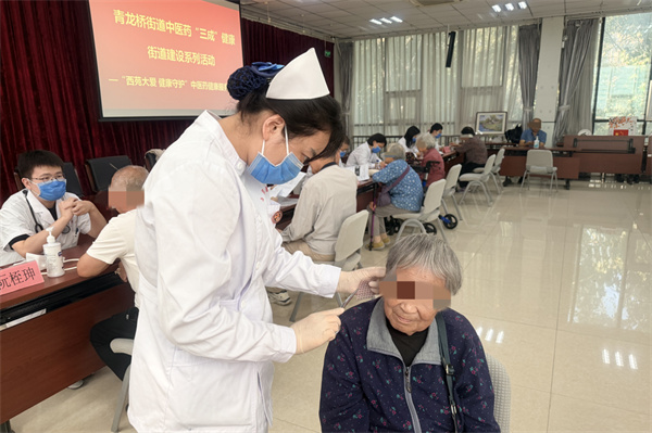 在助力青龙桥街道“中医药三成健康街道”建设的过程中,西苑医院不仅组织专家师资助力开展中医药管理责任师专项培训,还组建多学科专家团队,在2025年8月—12月之间,深入挂甲屯社区、韩家川社区、军科社区、中央党校社区、309医院社区、国际关系学院社区、国防大学社区、遗光寺社区等8个社区,开展“西苑大爱 健康守护”系列义诊活动。专家们通过把脉问诊、体质辨识、耳穴埋豆、推拿按摩等中医特色服务,将优质医疗资源精准下沉,让居民在家门口就能享受到“国家队”的诊疗服务,切实推动了中医药“理念形成、设施建成、行为养成”在基层落地生根。