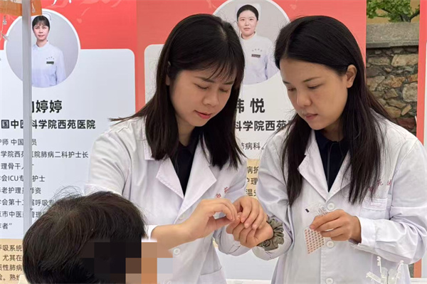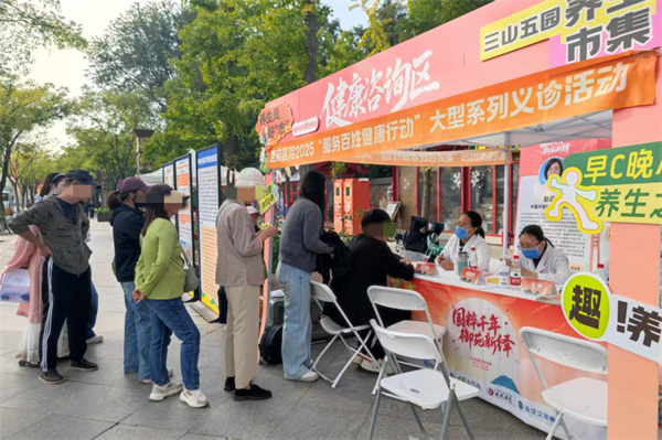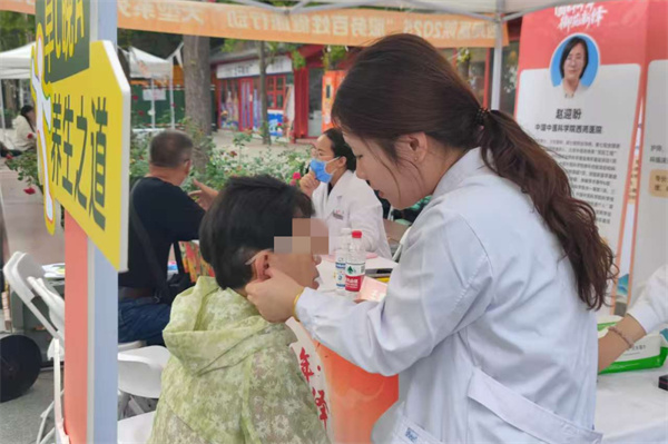 2025年10月国庆期间,西苑医院会同海淀文旅集团,在同庆街设立中医健康驿站,累计派出专家100余名,将义诊服务融入文旅场景。在同庆街的古道旁,义诊区成为景区一道独特的风景线,专家团队现场开展脉诊、耳穴压豆、养生茶饮体验等服务,络绎不绝的游客在观赏古街秋韵、购买文创产品之余,驻足体验中医特色疗法,让市民游客在欣赏美景的同时,享受到专业的中医药健康服务。