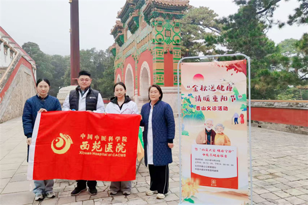 10月29日重阳节之际,西苑医院在香山风景区开展了“金秋送健康,情暖重阳节”香山义诊活动,活动特邀心血管科、综合科等多学科专家及护理团队,将权威医疗资源精准引入香山这一热门文旅地标。专家们针对老年群体常见的心血管疾病、脾胃问题开展“一对一”辨证指导,护理团队则提供耳穴贴压、温灸刮痧等中医特色调理服务,让市民在登高赏红、践行重阳习俗的同时,便捷获取专业的中医药健康服务,开创了“文旅搭台、健康唱戏”的医旅融合服务新模式。