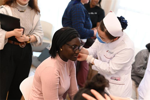 2026年3月10日下午,中国中医科学院西苑医院与北京大学国家发展研究院、南南合作与发展学院(以下简称北大国发院)联合举办中医药健康文化体验活动。西苑医院党委书记李秋艳带领专家团队将中医药文化带入承泽园。北大国发院党委书记雷晓燕、教职工代表及二十余名留学生共同参加活动。